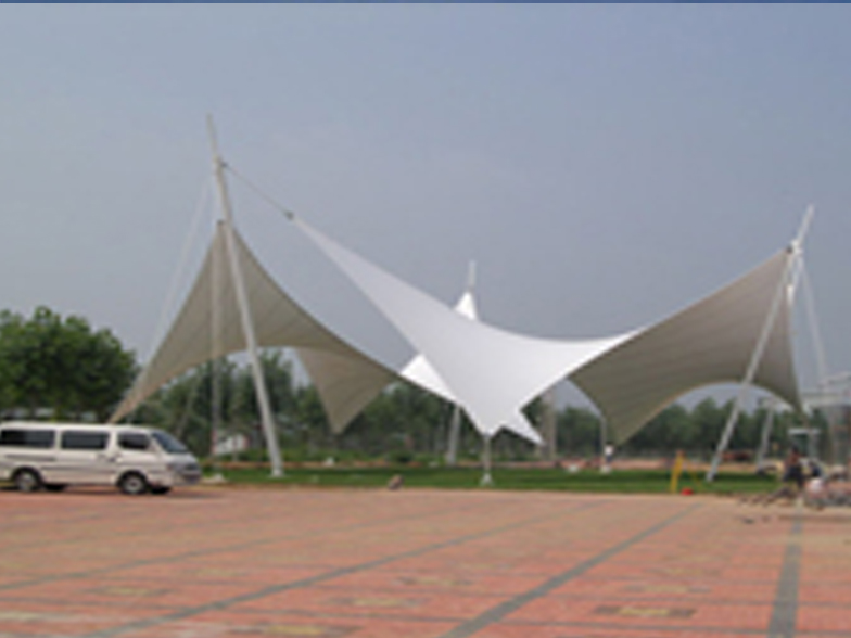 景觀膜結(jié)構(gòu)又稱張拉膜景觀,主要通過膜結(jié)構(gòu)的張拉式 呈現(xiàn)出唯美的結(jié)構(gòu)特征;膜材料是指聚酯纖維基布或PVDF、PVF、PTFE等不同的表面涂層,配以優(yōu)質(zhì)的PVC組成的具有穩(wěn)定的形態(tài),并可承受一定載荷的建筑紡織品。它的壽命因不同的表面涂層而異,一般可達(dá)成10-20年;其外觀整潔大方,自潔性強。主要應(yīng)用于各大公園,世博園,和一些廣場,商場等場所。